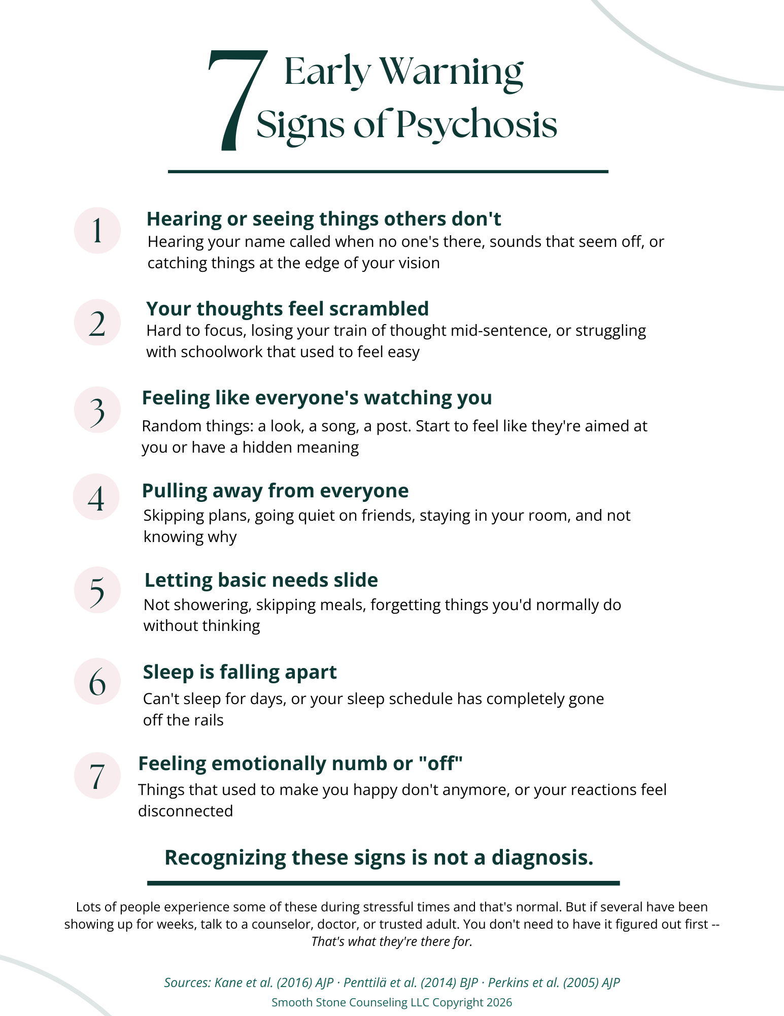 The goal of early identification is not surveillance or pathologizing normal variation. It is ensuring that young people who are struggling — who are frightened by experiences they don't understand, who are losing ground academically and socially — receive skilled, compassionate care before their illness becomes more entrenched.